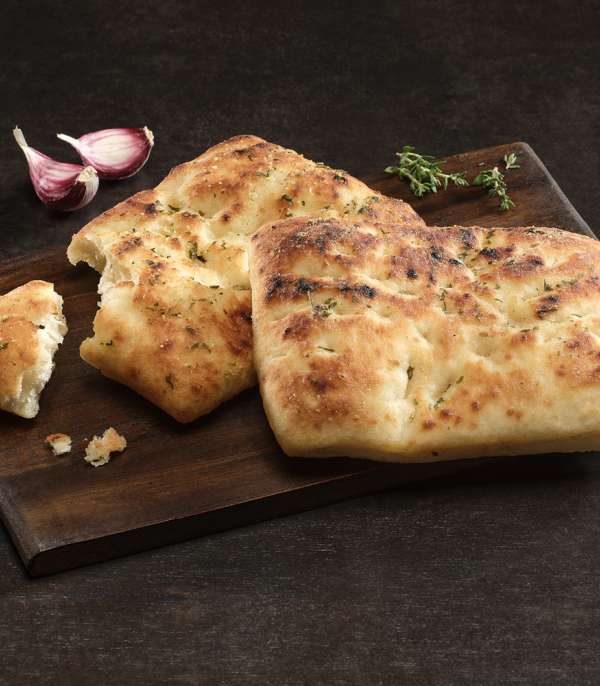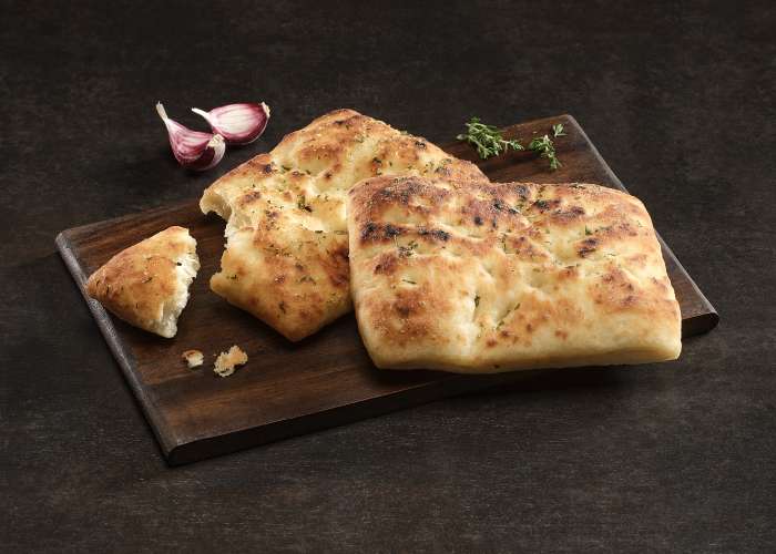 Aussen goldbraun und innen fluffig und weich – unsere Focaccia mit aromatischem Knoblauch-Aufstrich ist der perfekte Snack für alle, die es würzig und herzhaft lieben.