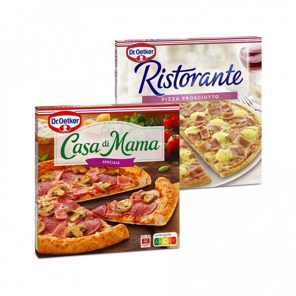 Allora la Pizza Prosciutto Ristorante, dalla base sottile e croccante, e la Casa di Mama Speciale, che si gonfia alla perfezione in forno, fanno al caso tuo.