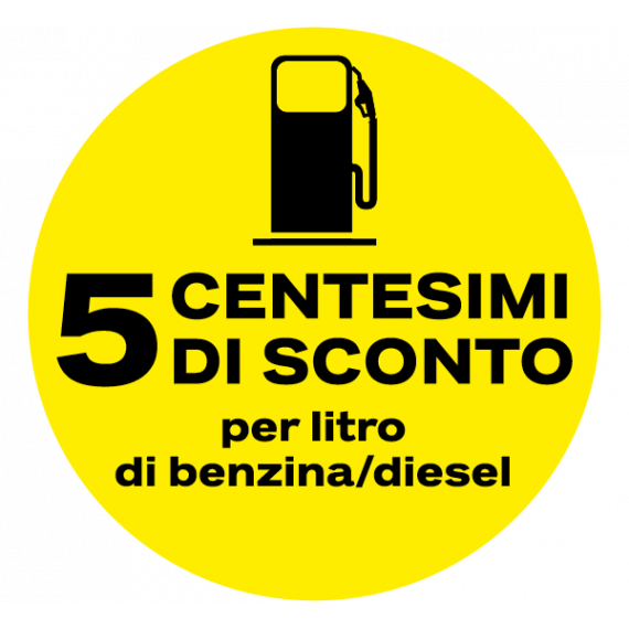 Presentando questo biglietto per il regalo alla cassa dopo aver fatto rifornimento riceverete 5 centesimi di sconto per ogni litro di benzina o diesel.