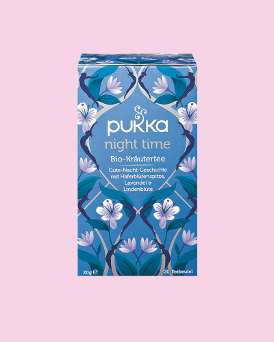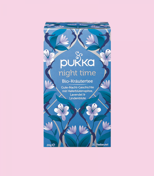 C’è un rimedio naturale contro l’insonnia. Perfi no più di uno. Con questi ingredienti, Pukka ha creato il Bio Night Time. Una miscela armoniosa di tè senza caffeina che calma, rilassa e favorisce il sonno. 20 bustine