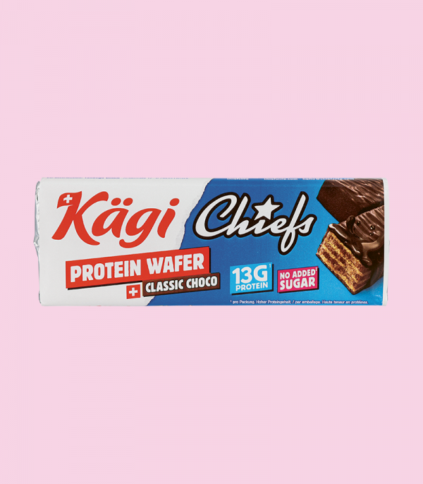 Dalla collaborazione tra Kägi e Chiefs nasce una nuova generazione di snack sportivo: la croccante barretta avvolta nel più fi ne cioccolato svizzero, con tutto il gusto autentico di Kägi e l’energia fi rmata Chiefs, ricca di proteine e senza zuccheri aggiunti. 50 g